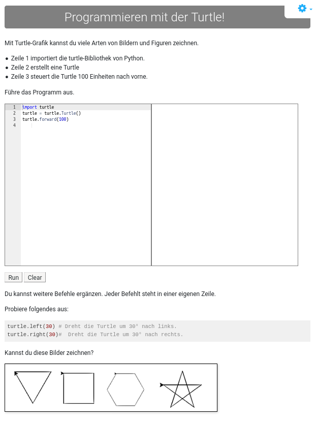 Mit Skulpt habe ich in mein Moodle Turtle-Grafik eingebunden.